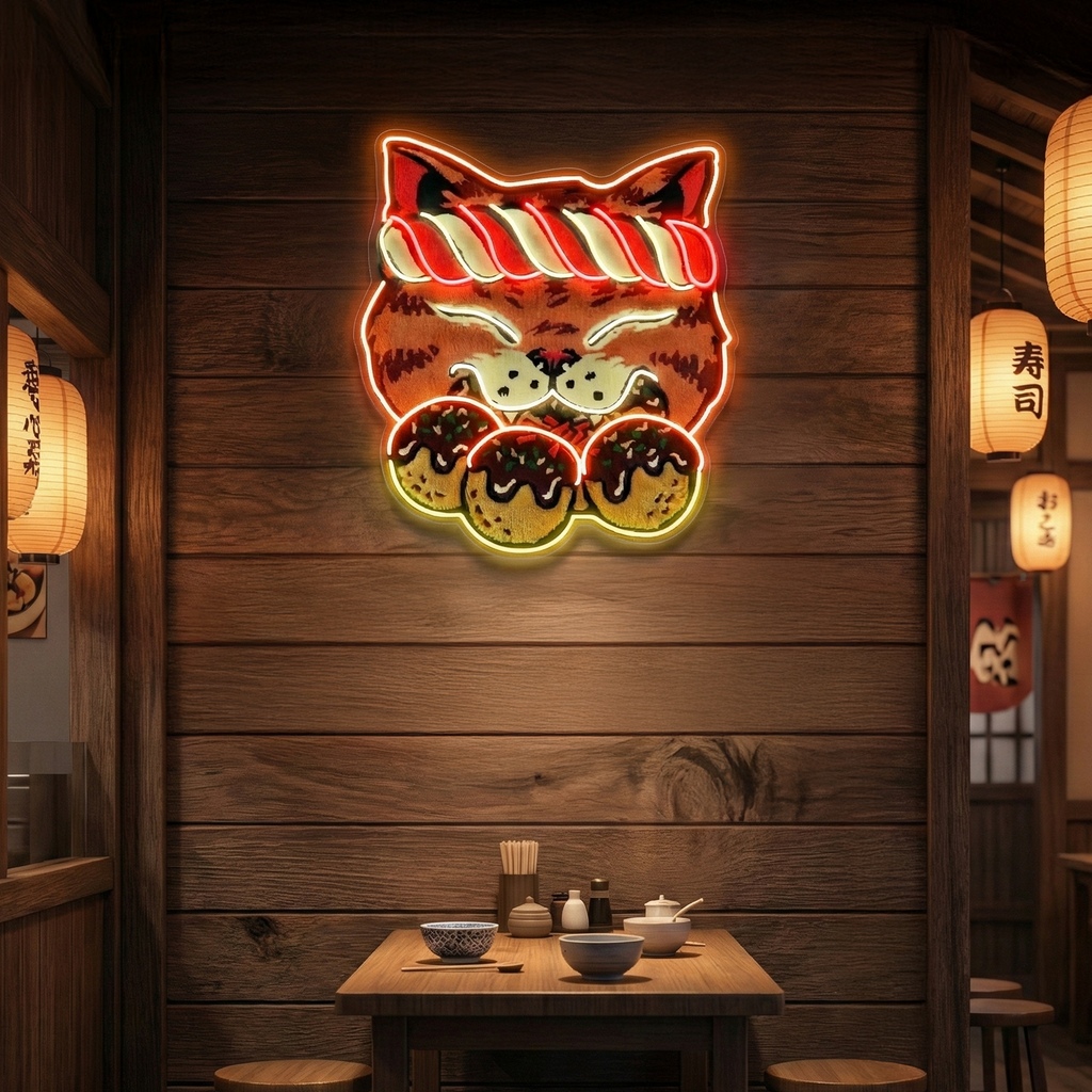 Lucky Cat Takoyaki LED Neon Sign for Japanese Restaurant Decor
