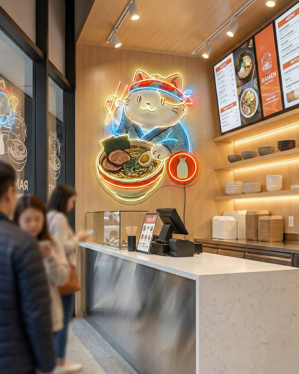 Ramen Cat Neon Sign – Cute Japanese Food LED Neon Wall Art